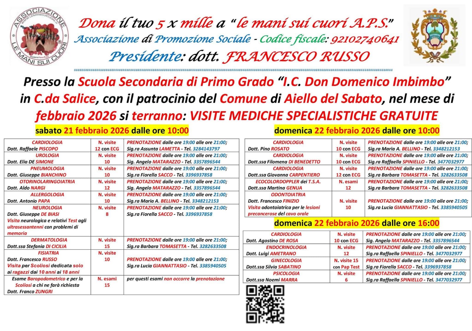 sabato esclusivamente con prenotazione ,da effettuarsi con un preavviso di 5 giorni, mediante mail a info@cesvolab.it oppure contattando il n. 0825 786108