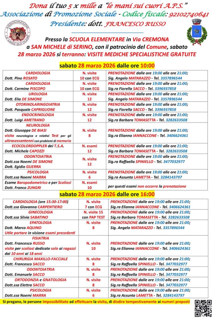 Associazione le mani sui cuori APS – Visite mediche specialistiche gratuite 28 marzo